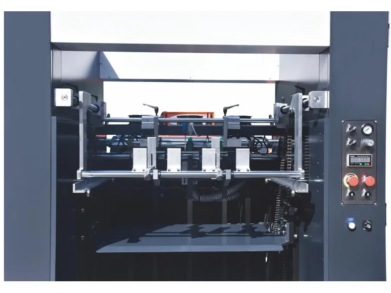 - Nivelador de papel fotoelétrico pneumático frente e verso e papel forte, plano e lento; Dispositivo intermediário para evitar a liberação de inércia do papel grosso; Faixa média para garantir uma recepção de papel suave e organizada.